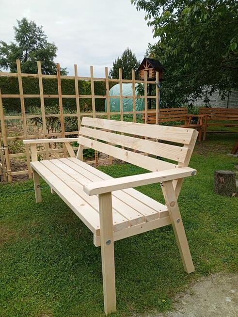 Trzyosobowa drewniana ławka ogrodowa o wymiarach: Długość: 150cm Szerokość siedziska: 44cm Szerokość całej ...